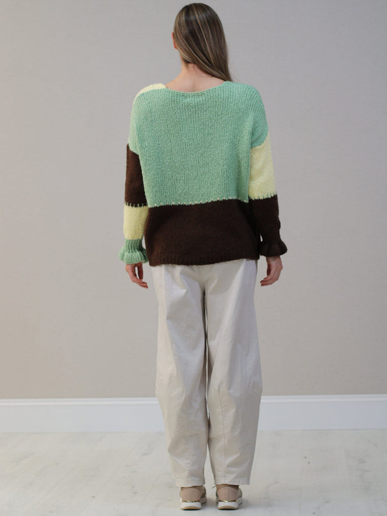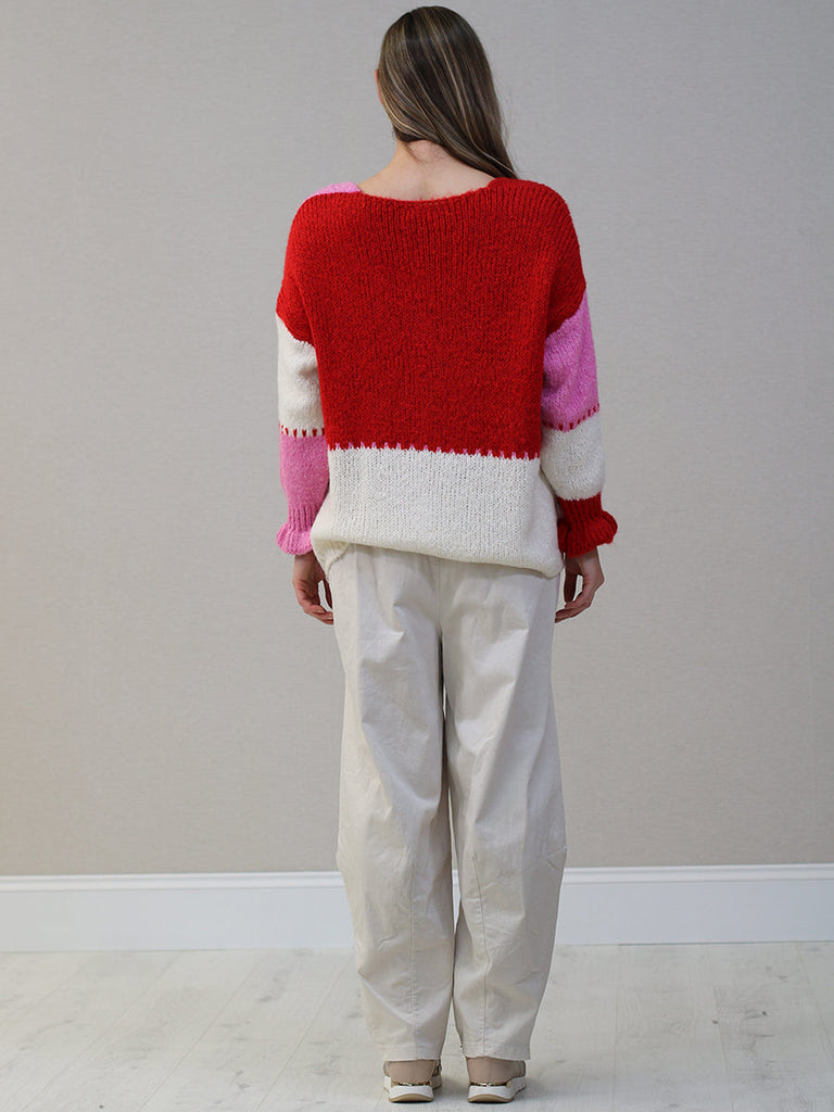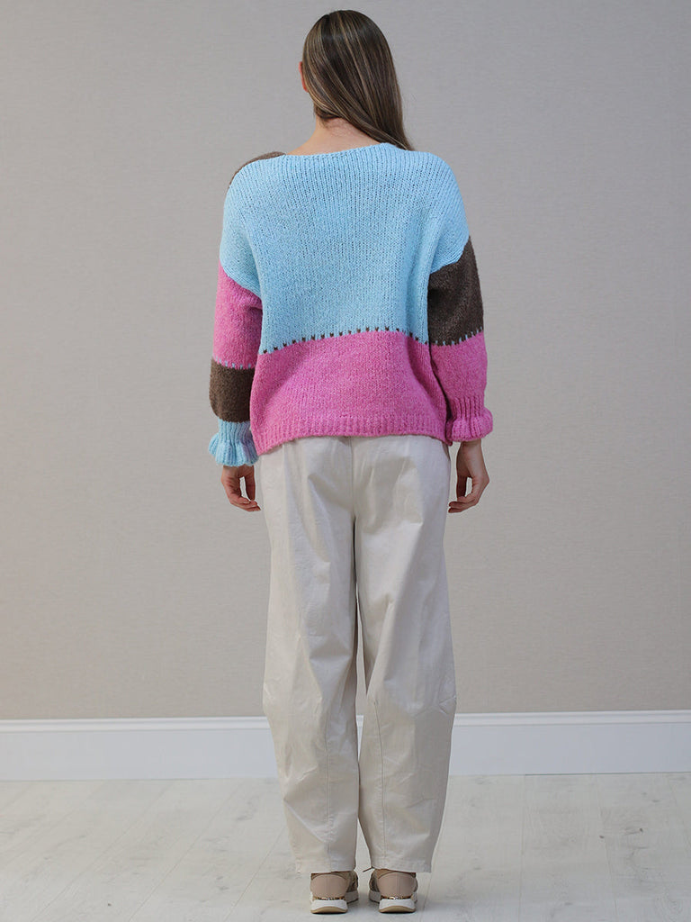 Fashion Clothing Store new knitwear edit presents this eye-catching cardigan designed to deliver both warmth and style. The multicolor block pattern adds a pop of personality, while its front button closure, drop shoulders, and sweeping bell sleeves create an effortlessly chic silhouette. Finished with a neatly ribbed hem, this Italian-made cardigan layers beautifully over winter outfits, making it an instant seasonal staple.