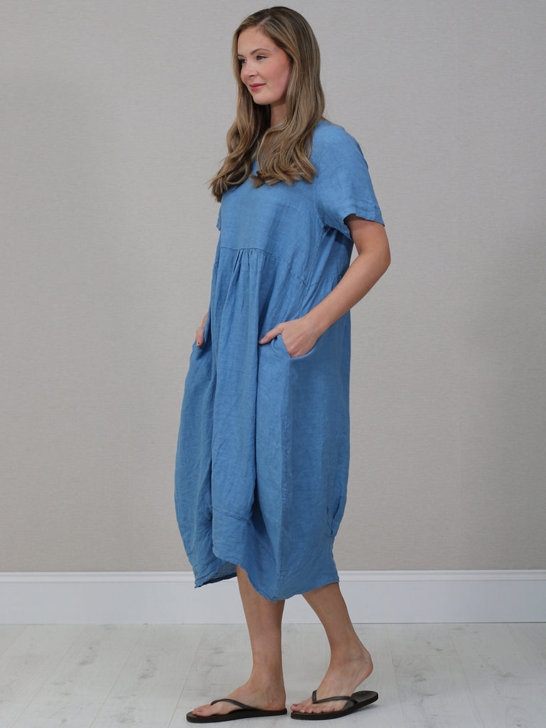 Simple and classic with its plain spread, it is just what women wearers would love to add to their everyday go-to wardrobe collection with features that are combined with comfort and style. Plunging a round neckline, and short sleeves that make summer wearing cool and comfy with over size lagenlook fit this midi swing outfit will go perfectly with high heels and a printed scarf.